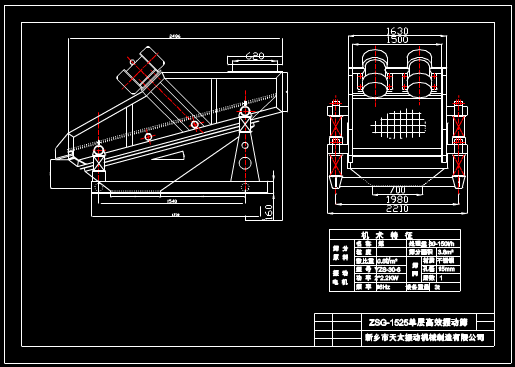 1535礦用振動篩圖紙1535礦用振動篩技術表原料散比重0.5t/㎡處理能力 0-5...